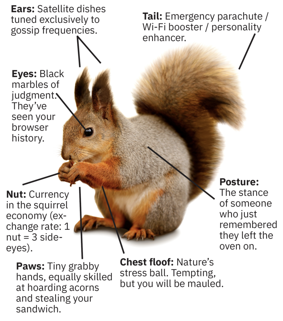 Like bird watching, but with less grace and more chaos. Squirrel watching is the recreation of observing nature’s twitchiest little weirdos as they scream silently, commit petty theft, and attempt parkour stunts they clearly weren’t trained for.